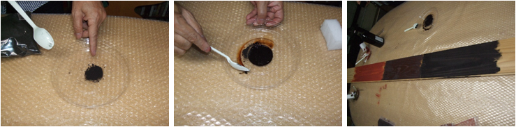 ①べんがらの粉を容器に取ります。
