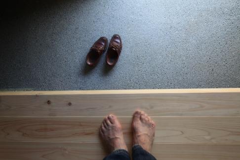 床の杉板は1枚1枚、赤白の源平模様だが
